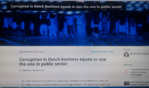 Cu totul întîmplător, cităm din Raportul întocmit de „Transparency International” (TI) în anul 2012: „În Olanda, iniţiativele anti-corupţie sunt rareori dezvoltate de organizaţii guvernamentale sau non-guvernamentale ori de mediul de afaceri. În plus, detectarea corupţiei, investigarea şi urmărirea penală în ţară au fost încă dificil de pus în practică şi precizează că a existat o tensiune între interesul justiţiei penale în implementare şi cel economic de a evita implicarea justiţiei penale”. Iată şi cum a fost prezentat acest Raport pe site-ul „New Eurrope” („Dutch” înseamnă Olanda):