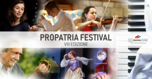 Ajuns la a opta ediție, Festivalul Internațional PROPATRIA – Tinere Talente Românești revine în 2018 cu un bogat program de evenimente cu intrare gratuită care se vor desfășura la Roma în locații de prestigiu. Realizat în cadrul activităților care marchează Centenarul Marii Uniri, dedicat atât publicului român cât și celui italian, Festivalul are loc la Roma, în perioada 29 septembrie – 21 octombrie 2018. Ca în fiecare an, vor urca pe scenă invitați importanţi: pianista Mara Dobrescu, violoncelistul Leonardo Cianferra, artistul Geo Florenti, pianiștii Filippo Tenisci și Emmanuele Stracchi, violonista Angela Turchetta, directorul de imagine Blasco Giurato, pilotul Fabio Barone, dansatoarea Juhasz Csilla, clavecinistele Pușcașu Luiza-Aysel și Raluca Enea etc..