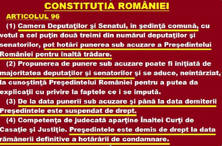 Potrivit „Constituţiei României”, art. 2, al. 1 şi 2, SUVERANITATEA este definită astfel: „Suveranitatea naţională aparţine poporului român, care o exercită prin organele sale reprezentative, constituite prin alegeri libere, periodice şi corecte, precum şi prin referendum. Nici un grup şi nici o persoană nu pot exercita suveranitatea în nume propriu. Or, dacă „suveranitate” înseamnă să respecţi rezultatul alegerilor libere, pe cale de consecinţă, încercînd să schimbi prin alte mijloace acest rezultat, mai ales cu ajutorul unor puteri străine, fie ele şi din Uniunea Europeană, asta înseamnă să suprimi suveranitatea ţării!