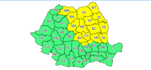 Meteorologii au emis, marţi dimineaţă, o atenţionare Cod galben de ploi torenţiale şi vijelii pentru mai multe judeţe valabilă până miercuri, ora 10:00, când va intra în vigoare o informare meteorologică de ploi şi răcire accentuată pentru toată ţara.