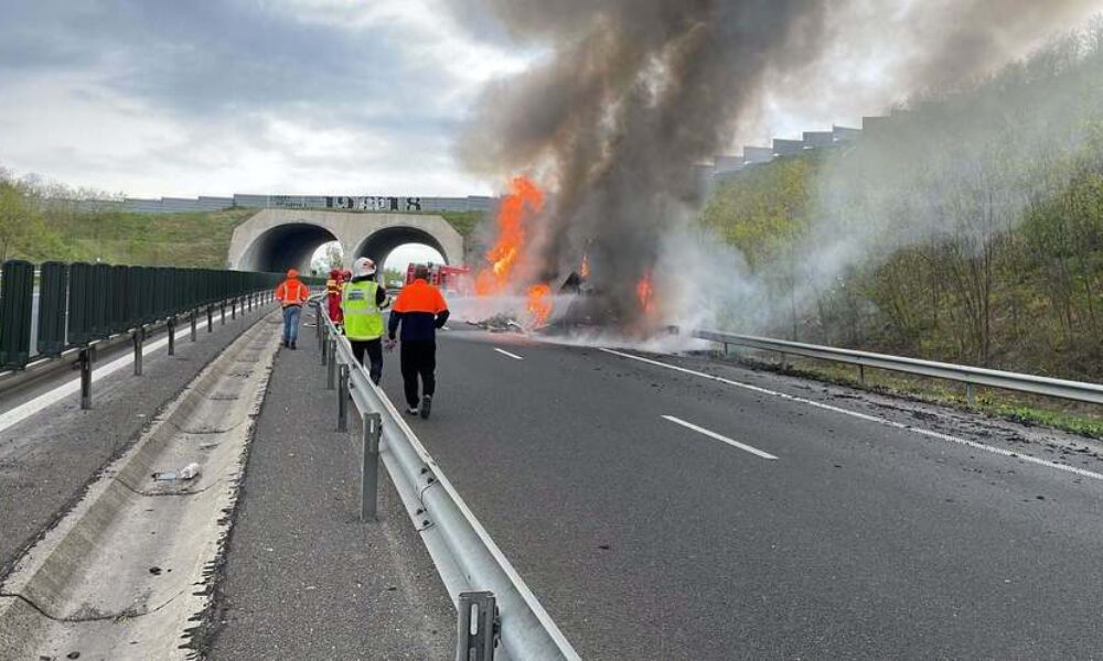 Un autocamion care transporta fructe a fost cuprins de flăcări pe autostrada A1, pe sensul Deva – Timișoara, în zona Deva. Pompierii au intervenit de urgență cu mai multe autospeciale de stingere, o autospecială de comandă și o ambulanță SMURD.