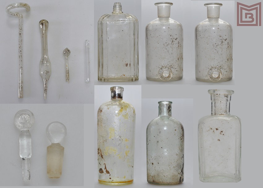 Ca o surpriză pentru noi a fost descoperirea în dreptul Facultății de Chimie, a numeroase obiecte ce vor fi făcut parte din instrumentarul unui laborator (eprubete, pipete, sticluțe pentru substanțe, tuburi răsucite de sticlă etc).
