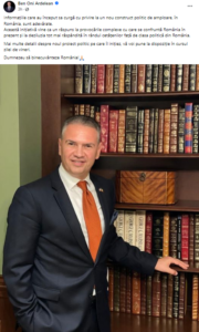 „În urma demisiei colegului deputat Ben Oni Ardelean din PNL, circulă în spațiul public informația că atât eu, cât și alți colegi deputați, ne-am alătura noului proiect politic promovat de colegul nostru. În cazul meu, informația este falsă. În ciuda tuturor problemelor pe care Partidul Național Liberal le întâmpină astăzi, nu părăsesc și nu voi părăsi corabia PNL. Cred cu tărie că Partidul Național Liberal va juca, în continuare, un rol critic în reconstrucția și dezvoltarea României, așa cum a făcut-o de-a lungul celor 148 de ani de existență și îmi doresc să fiu în continuare unul dintre acei membri care luptă pentru acest obiectiv”.