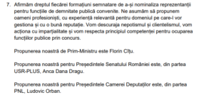 La rândul său, Dan Barna, copreședintele USR PLUS, a spus că documentul care stă la baza acordului de guvernare are circa 300 de pagini și conține date clare despre ceea ce trebuie să se întâmple în guvernarea 2020 – 2024.