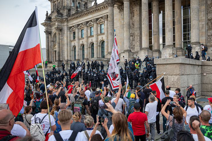 În acea zi, Germania și-a ținut răsuflarea. Drapele ale Reichului nazist au fost fluturate în fața Bundestagului, sâmbătă, 29 august 2020, când manifestanții și simpatizanții extremei dreapta și neo-naziști au încercat să intre în Parlament cu forța. Acțiunea a avut loc după o manifestație împotiva măștilor anti-Covid. Serviciile de informații germane apreciază că există 33.430 militanți de extremă dreapta, dintre care 1300 sunt gata oricând de acțiuni violente.