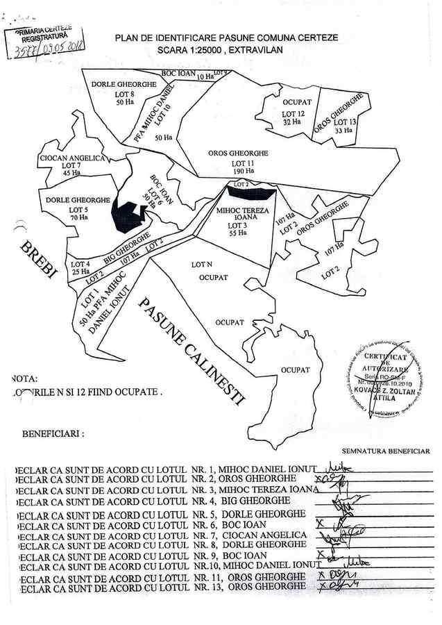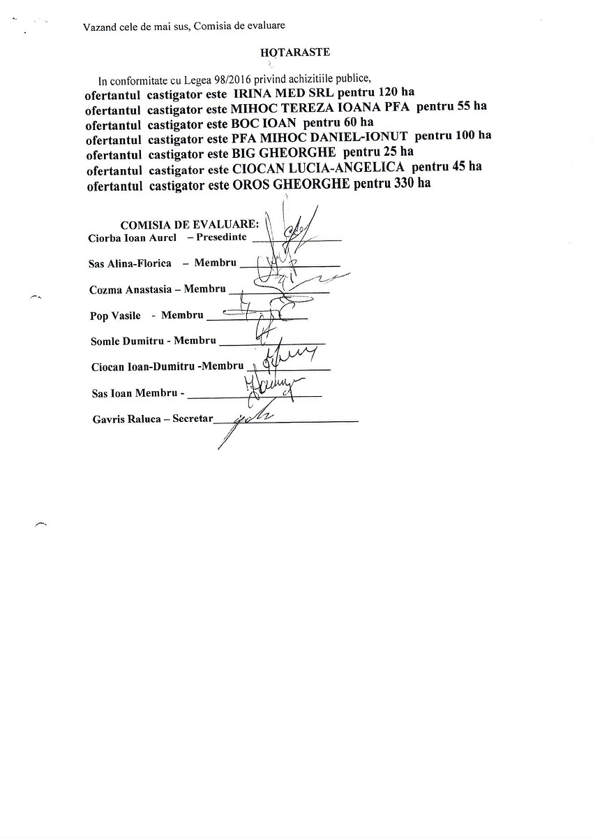 Comisia de licitației a desemnat, ilegal, câștigători pe toți participanții la licitație, unii dintre aceștia, apropiați ai viceprimarului, care nu au depus nici un fel de oferte. Mai grav, edilii șefi ar fi închiriat sute de hectare de pășune din domeniul primăriei unor persoane care nu dețin animale, în baza unor documente falsificate, tranzacții fictive cu mii de animale. Complicii fraudelor sunt oameni de afaceri locali, apropiați edililor din comuna Certeze și funcționari APIA Satu Mare care s-au făcut că verifică sute de animale existente doar în acte. Se pare că anchetatorii au descoperit că alte sute de hectare de pășuni au fost închiriate de edilii șefi ai primăriei, unor neamuri și apropiați, persoane de încredere, fără niciun fel de licitație. Aceste suprafețe apar în „Planul de identificare pășune comuna Certeze”, documente emise de primărie în urma licitație, ca loturi ocupate, nu se știe de cine și în ce scop.